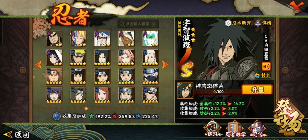 57S109A全忍者♑黑绝♌神驹斑♉侠隐佐助♐漂泊带土♈十尾带土♎须佐卡♓五影斑♋忍战带土♐天道
