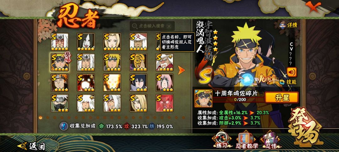 五影斑༃传说自来也༃金身水门༃六尾鸣人༃3100万༃54s忍334忍者