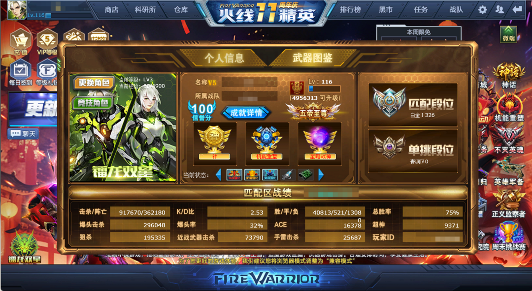 装备描述:套装:雷鸣灵兽冰火海滩猫狗幽星套装齐,毕方凌霄飞天套 英雄:五英雄满配:AK纪元,鹰王,无畏圣骑,殇影骑兵,天惩 星座:全星座一阶♏二阶 异彩:悦动星辰满阶,机动战士满阶,鬼魅-狂澜 五星:命运,金甲,逆鳞,逆鳞炎,电磁枪,卡牌,幻日,灭魔I,护臂I,幻魔,巴雷特真龙,魔剑,双镰,夺魂之镰,碎星,元素核心,灭魔II,天狼星,毁灭装置,逆转未来,真龙II,狮心II,蜂王,塔罗,破晓II,孔雀羽,狱龙破II,幽幻,护臂II,天麟II,天痕,天鳞I,龙胆枪,离子裂变,血与光II,星陨,穹宇之光,海王戟,炙金冲决,空之境,波塞冬,阿喀琉斯,曼陀罗,命运骰子,风云劫争,太阳神,凤舞II 精英:羊枪,圣龙,琼宇套 角色:镭龙三阶,觉醒维洛妮,女亚瑟,贝瑟,花木兰,孙悟空 变异体:满级小光头,痛苦女王,小丑,蜘蛛,螳螂,基齐 英雄:阿巴顿,悟空 生化:兔兔,羊枪圣龙魔剑,满级生化小飞机开局2血清 配件:vip5,朱雀之翼,能量护甲,满头满甲 称号:五帝至尊,军火大师 背包:道具卡血清弹匣全开,欢迎下单! 禁止利用账号进行开挂、使用辅助违规软件诈骗等违规操作! 禁止升级武器辱骂违规发言等毁号操作!