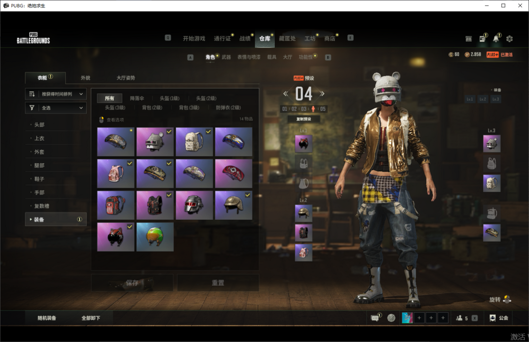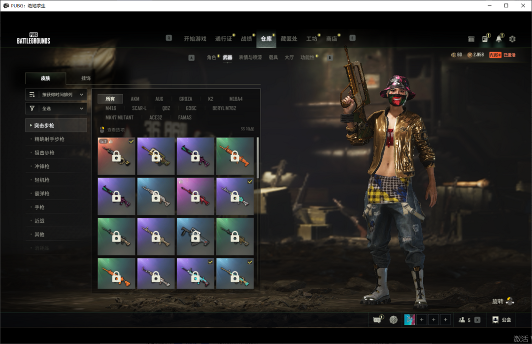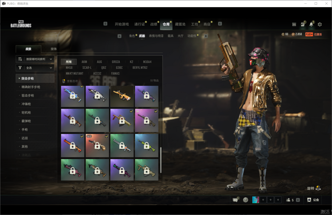 装备描述:②级时光使者①级牛头弥诺陶洛斯AUG①级魔咒之力✨无拒来世K2✨灵魂枷锁AKM✨拉风龙柏林裤套✨WIA双马尾✨维纳斯套✨WIA兔耳帽✨寰宇侠套✨魔力甜心萨莉套✨女皇套✨已购PLUS+✨98K玩具⚡SKS⚡M4⚡AK⚡绝地求生
