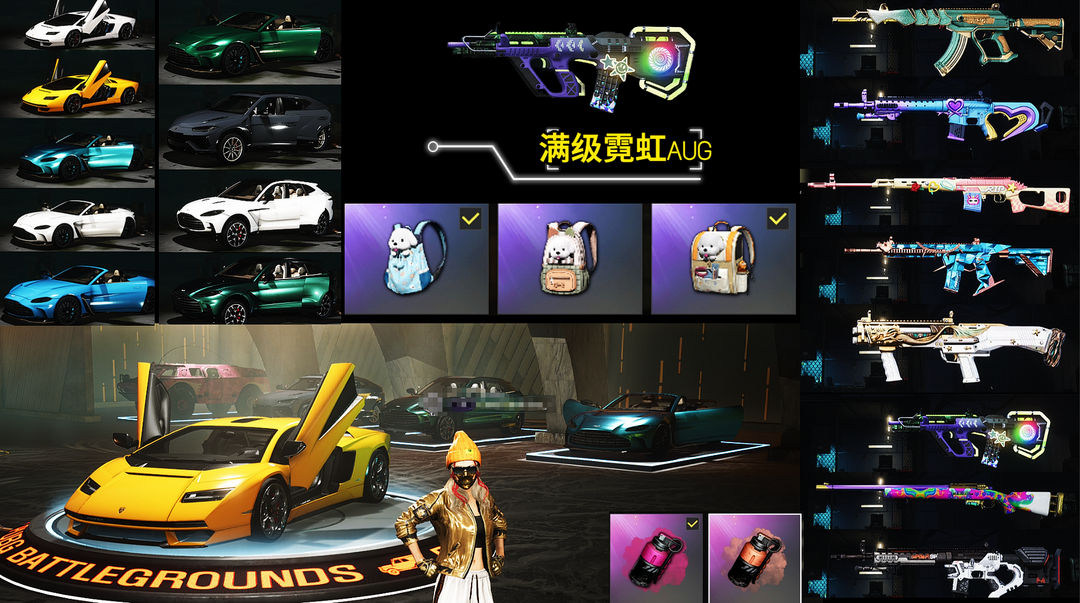 【8神器】满马丁跑车满兰博有车展大厅✨满级霓虹AUG✨赛搏危机MK12✨异色猪八戒M4✨妖魔之触AC