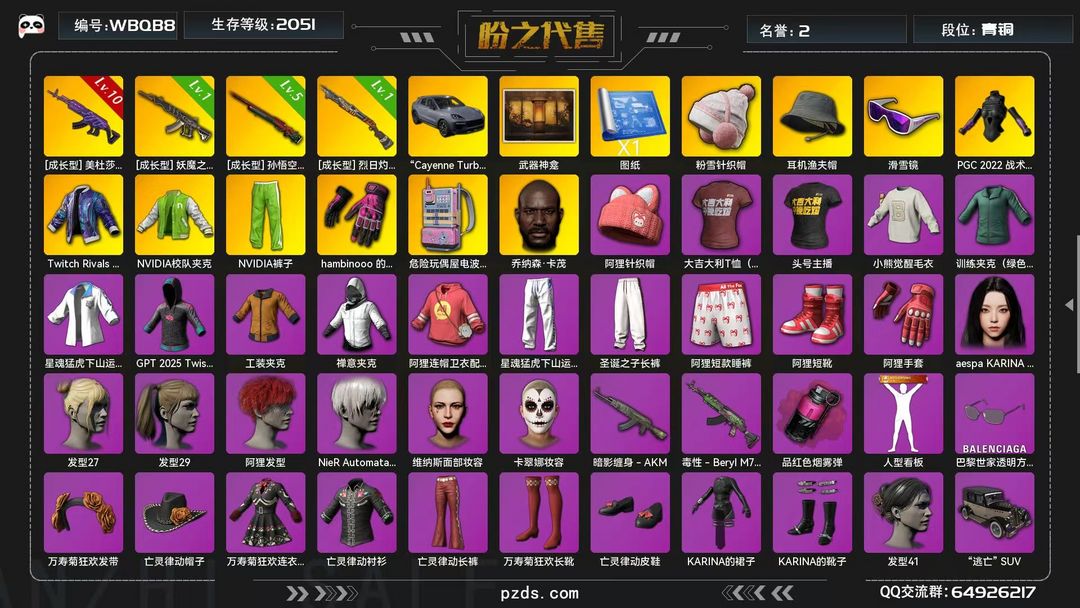 装备描述:显卡套--尼尔头卡崔娜--迈阿密手套--白云动--保时捷--满级美杜莎孙悟空妖魔之触烈焰喷子--黑鬼-粉电包--开挂必追究-网络不是法外之地