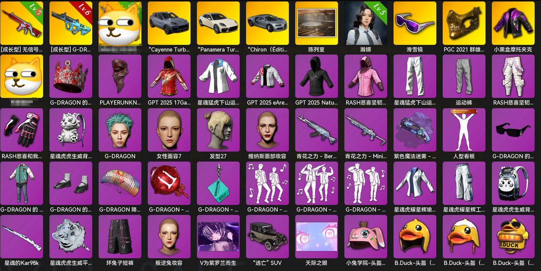 可排位✅满级击杀特效瀚娜❤️布加迪❤️保时捷帕拉梅拉❤️卡宴6级权志龙AUG大礼包6级无信号M4白运