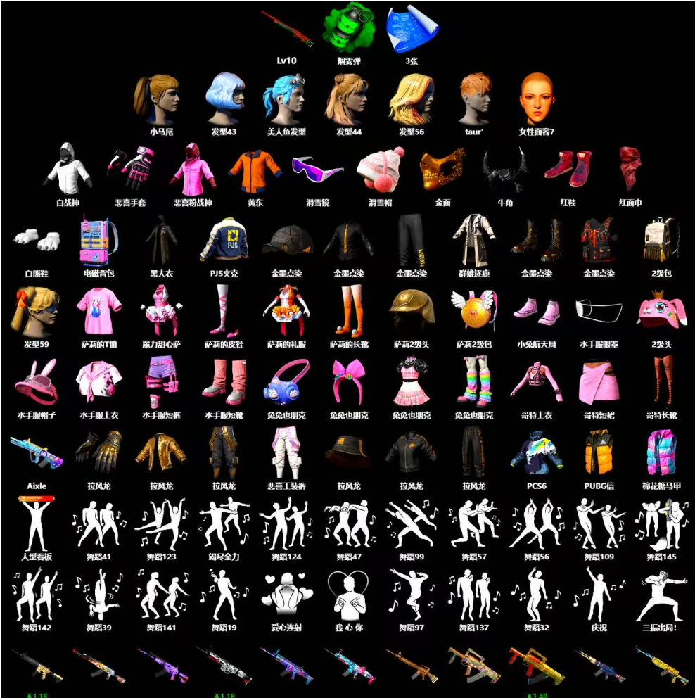 装备描述:十级特效孙悟空M24翡翠烟雾弹白战神黄东南亚悲喜套装滑雪镜金面恶魔角白熊鞋电玩电磁包