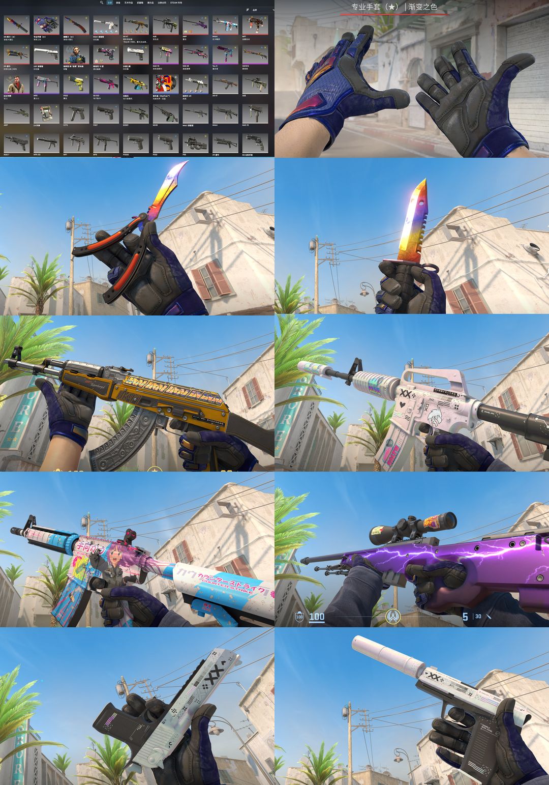22=S14【完美c+双刀】渐变手套✅渐变大理石蝴蝶✅渐变M9✅AK血腥运动✅印花集套✅AWP雷击