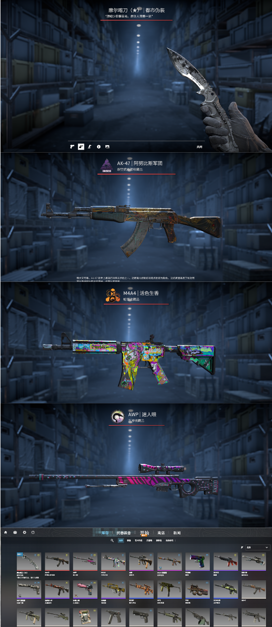完美老兵丶廓尔噶刀丶多红皮ak47阿努比斯丶m4a4活色生香丶awp死神丶m4破碎千秋丶主战多皮肤