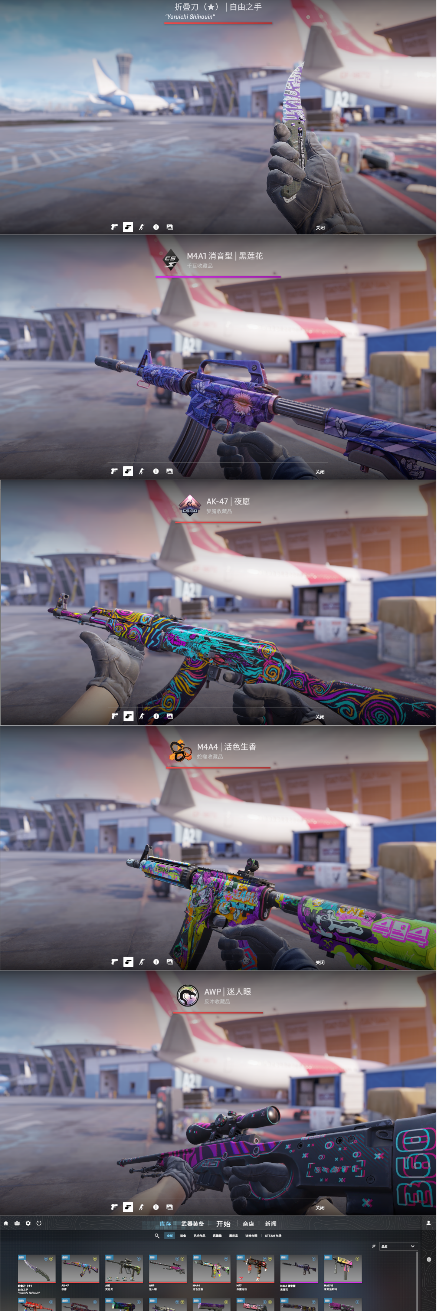 5e授信完美高危丶折叠刀自由之手丶awp迷人眼丶ak47夜愿丶m4黑莲花丶主战齐全多皮肤
