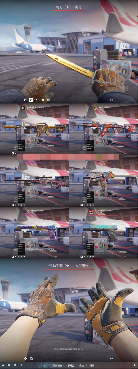 完美绿色老兵丶崭新虎牙刺刀丶运动手套大型猎物丶血腥运动ak47丶m4金蛇长绕丶超豪华主战