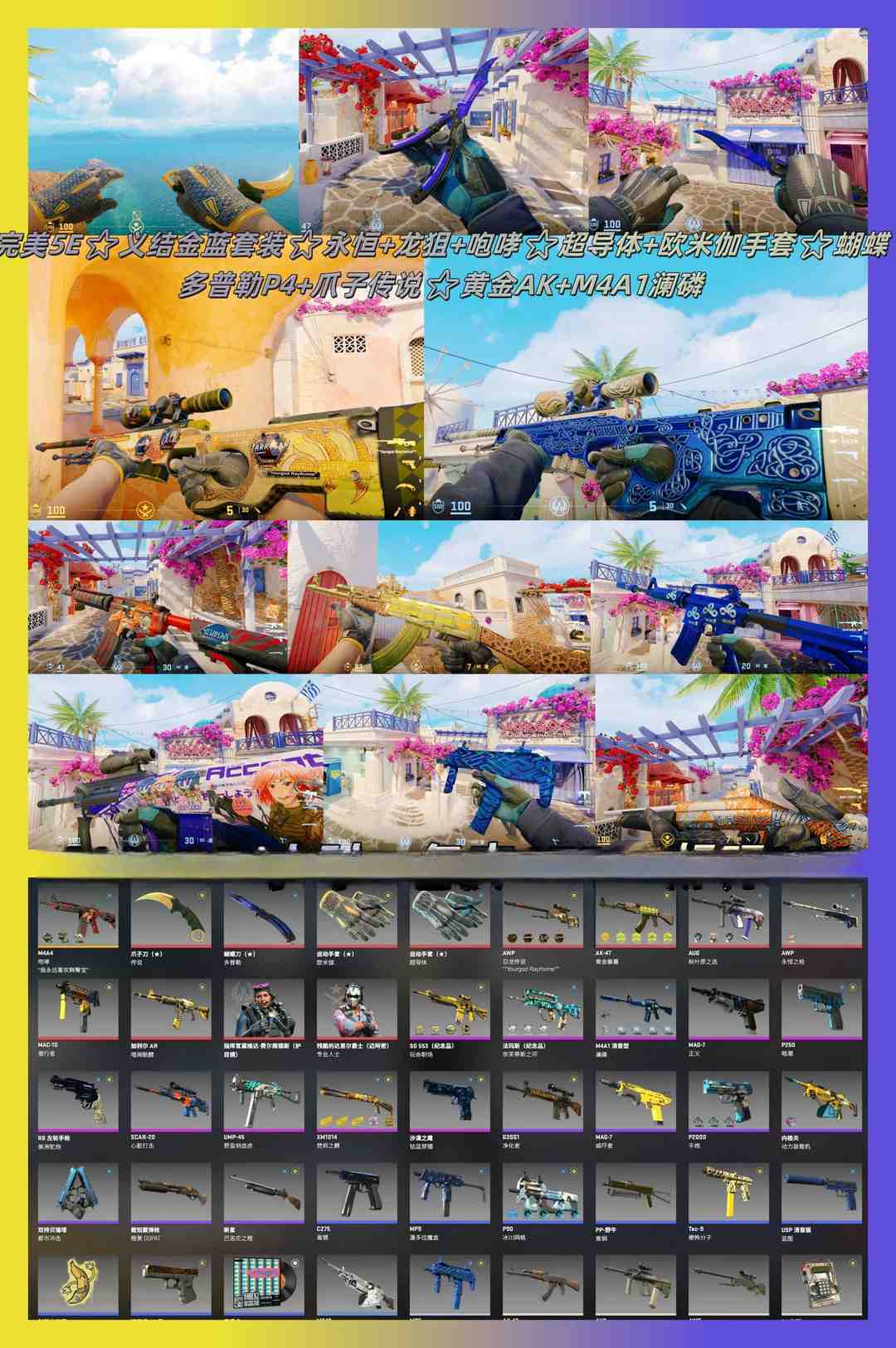 完美5E⭐义结金蓝套装⭐永恒+龙狙+咆哮⭐超导体+欧米伽手套⭐蝴蝶多普勒p4+爪子传说⭐黄金AK+M