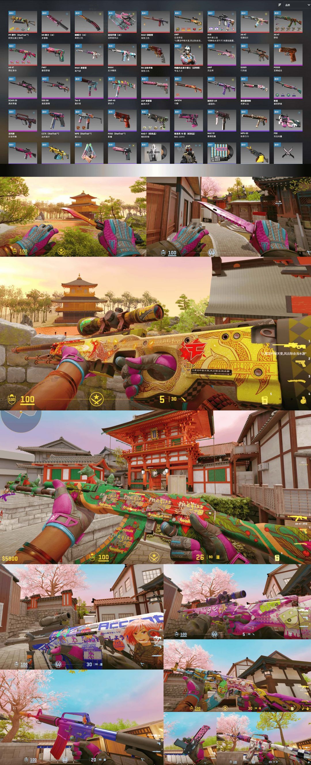 完美5E⭐略磨龙狙+野荷⭐蝴蝶渐变+M9多普勒p2粉⭐手套迈阿密⭐A1渐变+AUG秋叶原⭐AK怪兽+