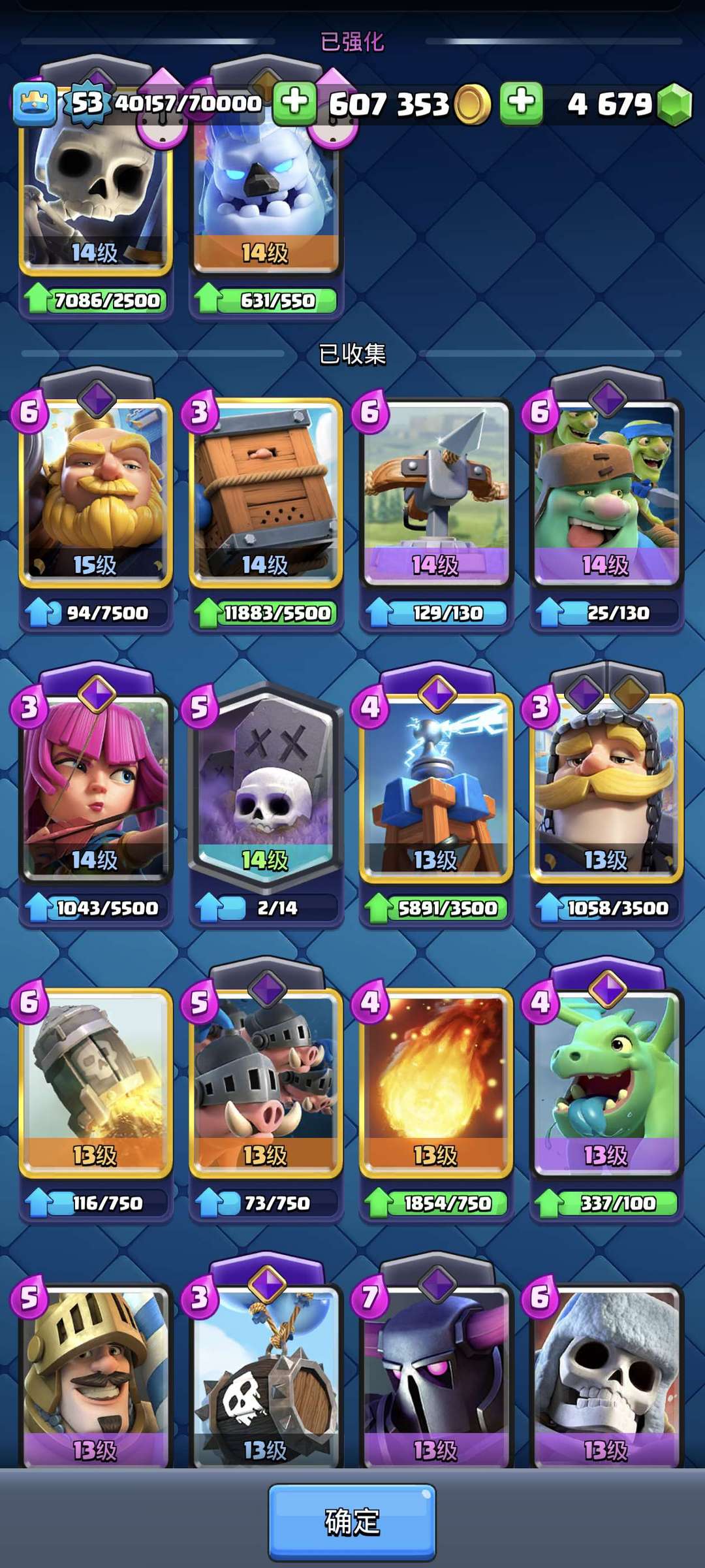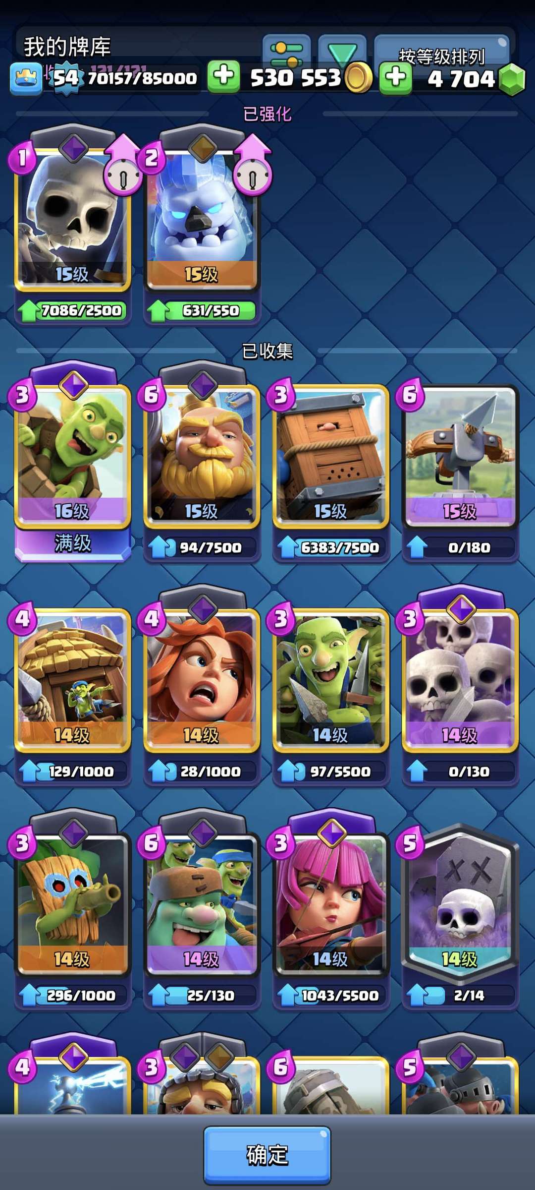 54级账号,15级国王塔 多个觉醒,多个高等级卡组