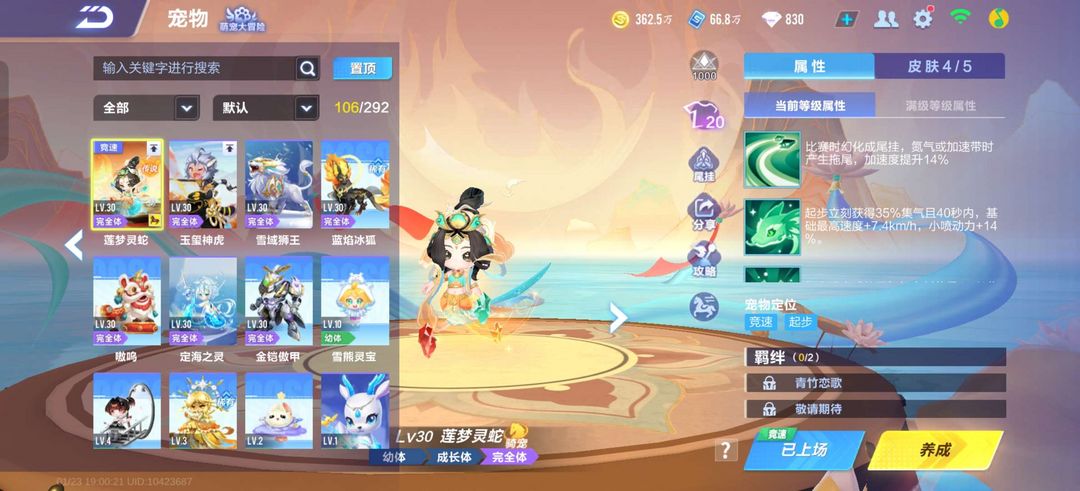 装备描述:机甲有个魅娅带世界之蛇和勋章机甲,联赛车有月影幻星弦音溯光,神宠灵蛇