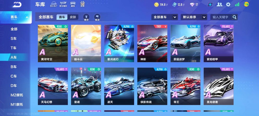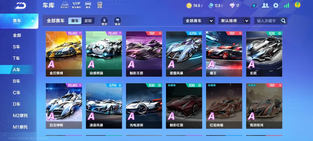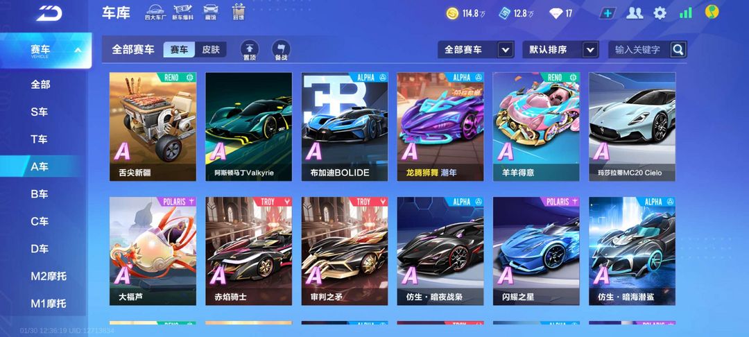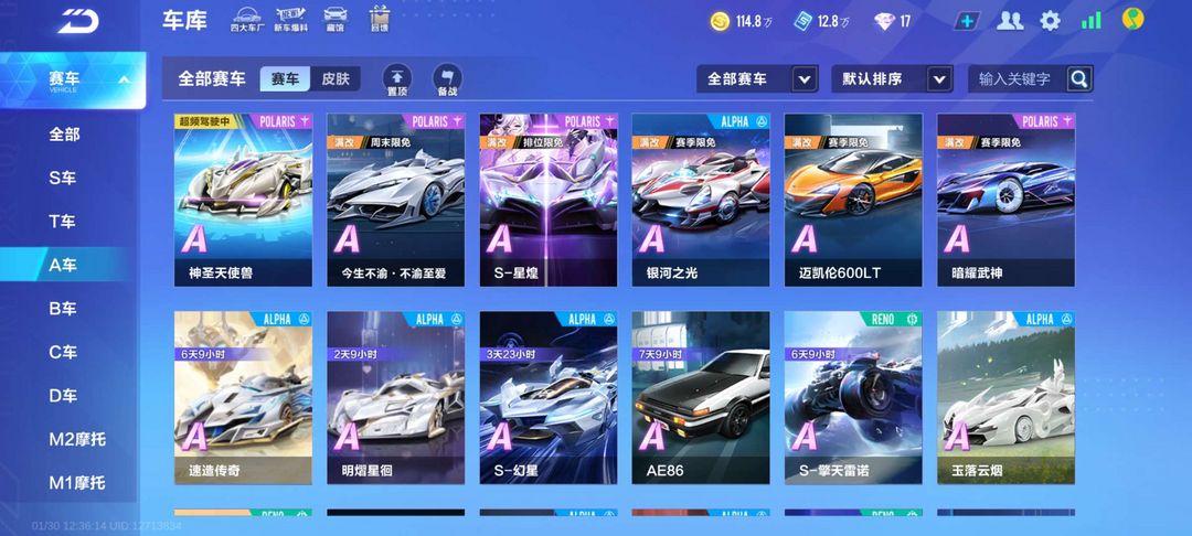 角色等级79级,A车35辆,年前活动
