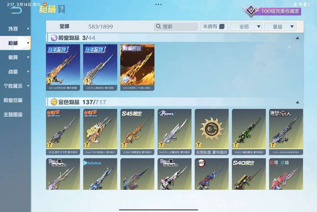 殿堂M4A4✨官服漩涡鸣人殿堂!⭐28把满级七级枪⭐140把金枪⭐超凡载具!⭐95金衣⭐顶级收藏家⭐
