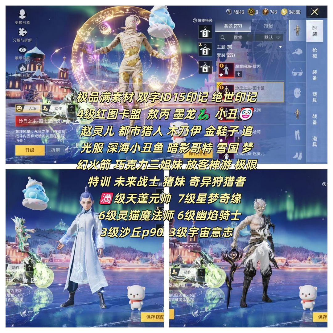双字ID极品满素材✨3红✨4级图卡盟小丑木乃伊男神套赵灵儿雪国巧克力✨满级天蓬满级星梦6级灵猫/幽焰
