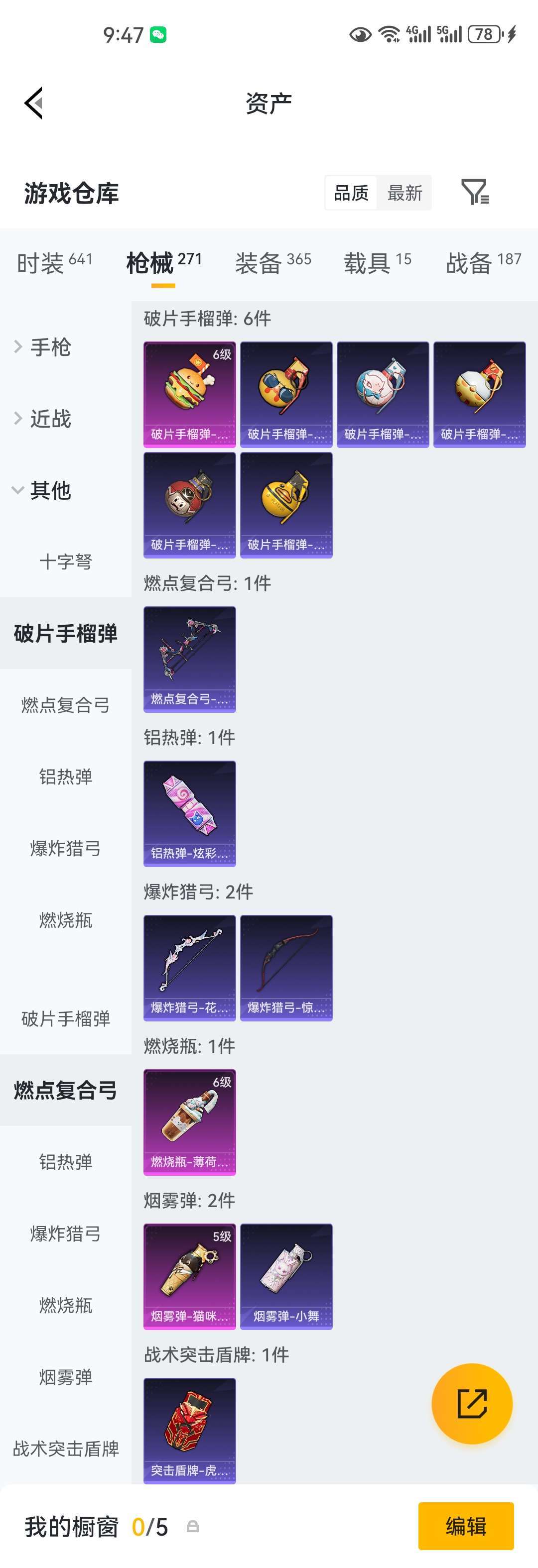 装备描述:90级绝世收藏家13万热力,暮色魅影角色9级ak马,最终圣卫者,星梦奇缘角色7级aug,9级超新星m4,7级月中灵维克托,7级aks74u,麒麟,星空马,鹿+红装+7级死嘎全套,满级宾利飞驰皇家紫,金马,星粉玛莎。满级猫咪烟雾,次满级汉堡手雷、绿色燃烧瓶。螳螂,小舞,火箭少女两套。
