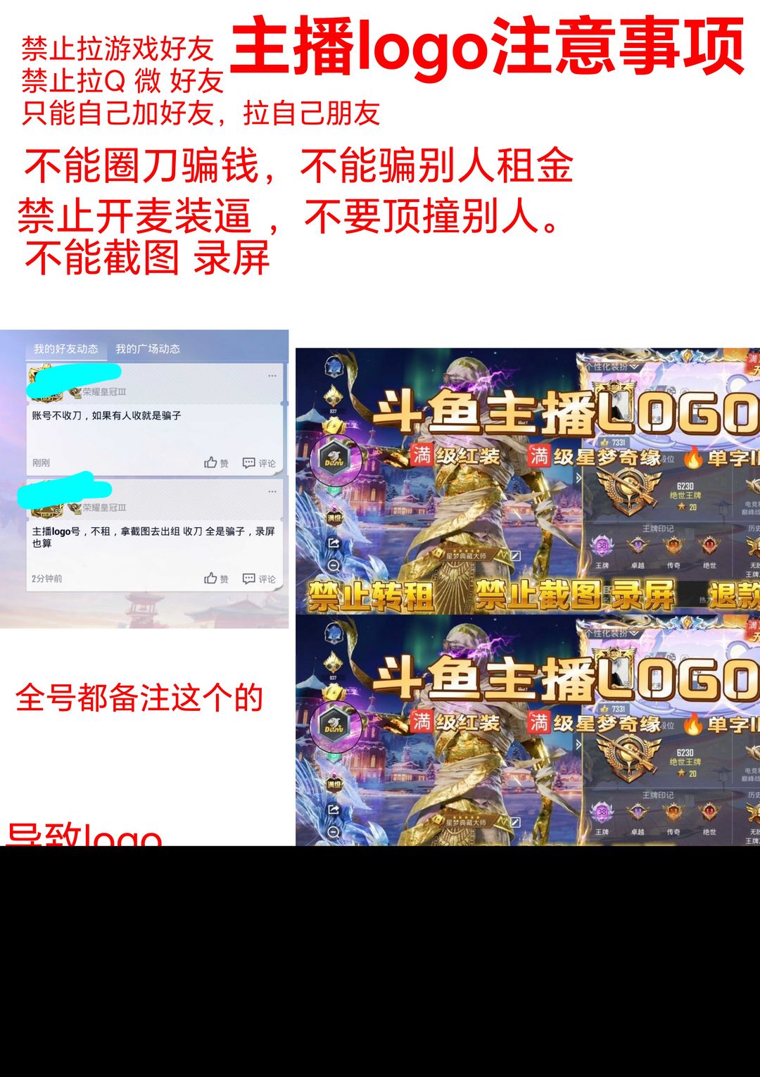 斗鱼主播LOGO/满级红装/星梦奇缘/白嫖扣押金/禁止录屏/截图/转租/