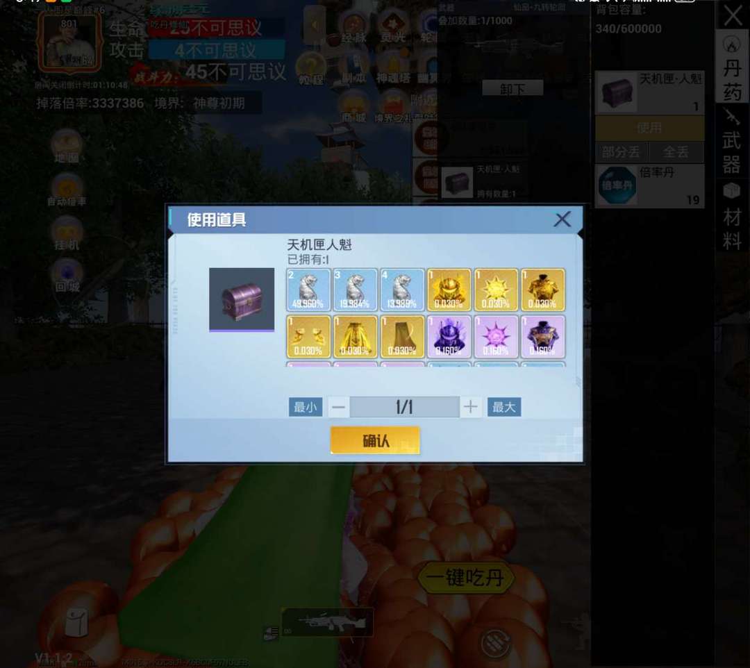 吃丹修仙不可思议战力300万倍率可打8阶圣墟丹,有概率掉落天机匣人魁颗秒有大菠萝神话灵光可带朋友