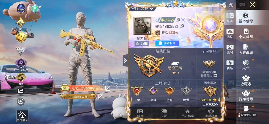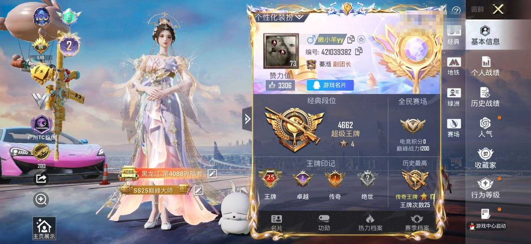 地铁满天赋/红装云鸾/37粉装25特效枪/3级迈凯伦红皮车5载具/合金龙骨/兰博基尼