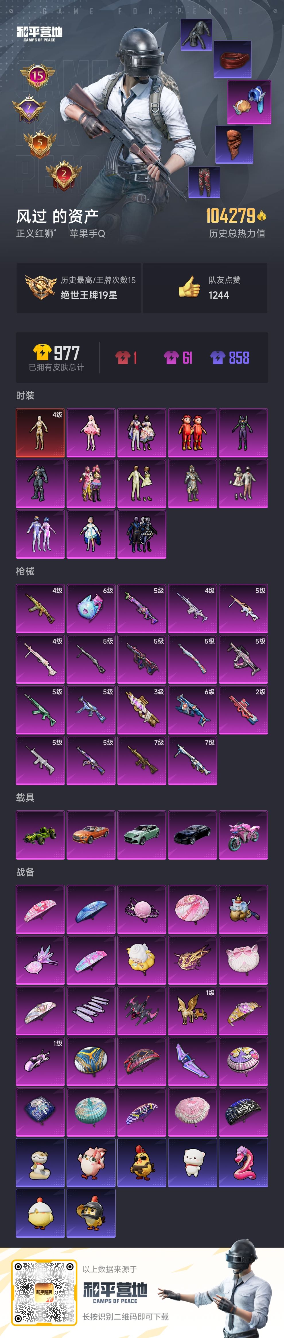 限制: 租号3次及以上 |装备描述:1红12粉19特5载具 地铁满天赋 4级图卡盟 都市 赤蝎 哥特 紫螳螂 猪妹 洛天依 梦幻火箭 奇异狩猎者胖达团团 7级五爪金龙3级沙丘之主