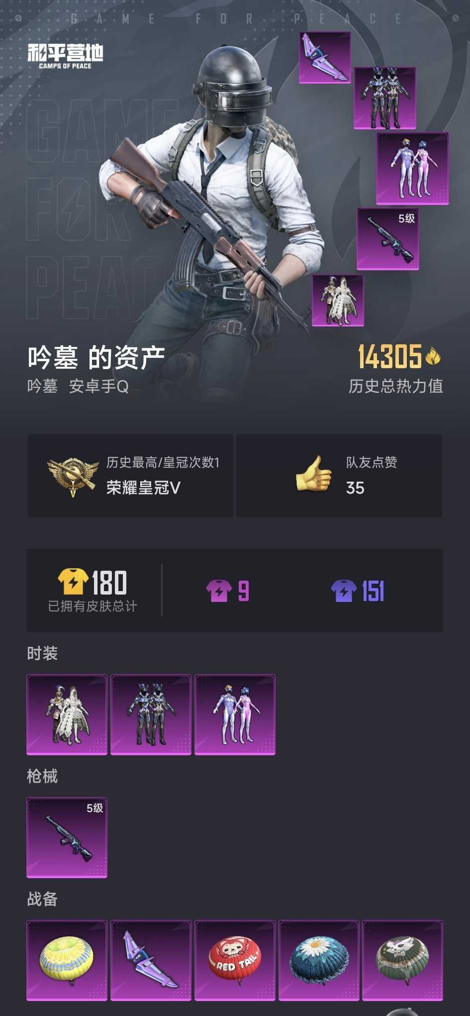 装备描述:9粉装冰霜白皇❤️梦幻火箭5级枪苍蓝❤️超值