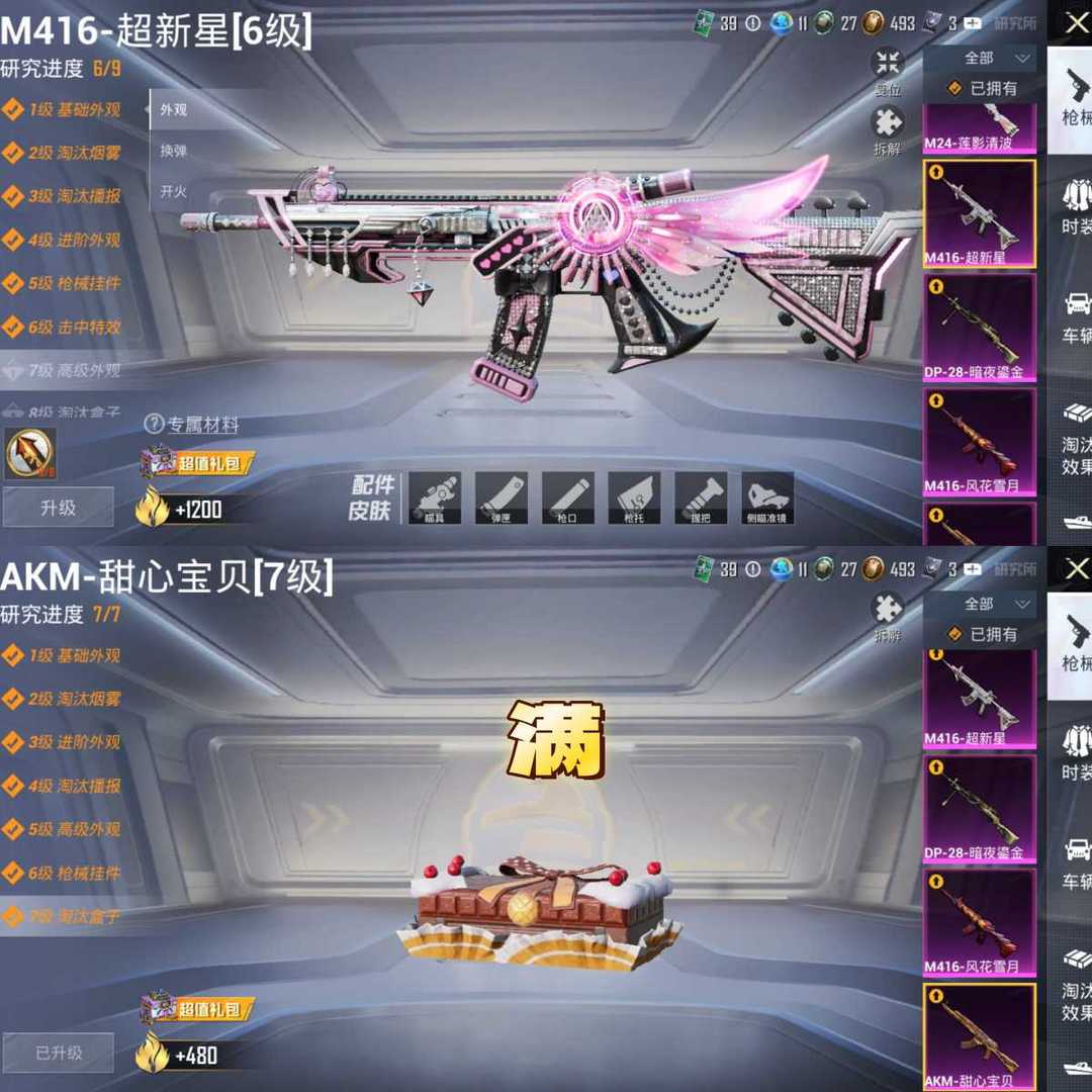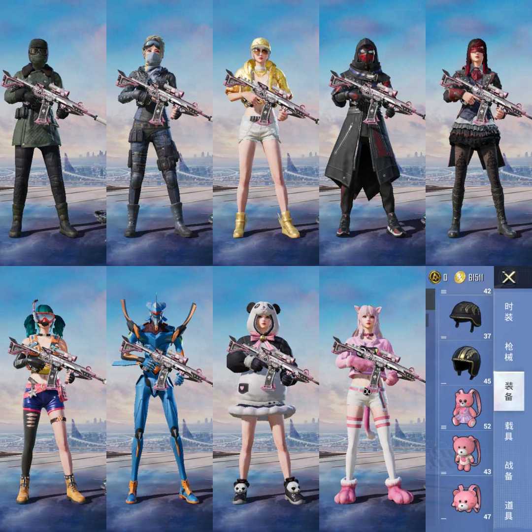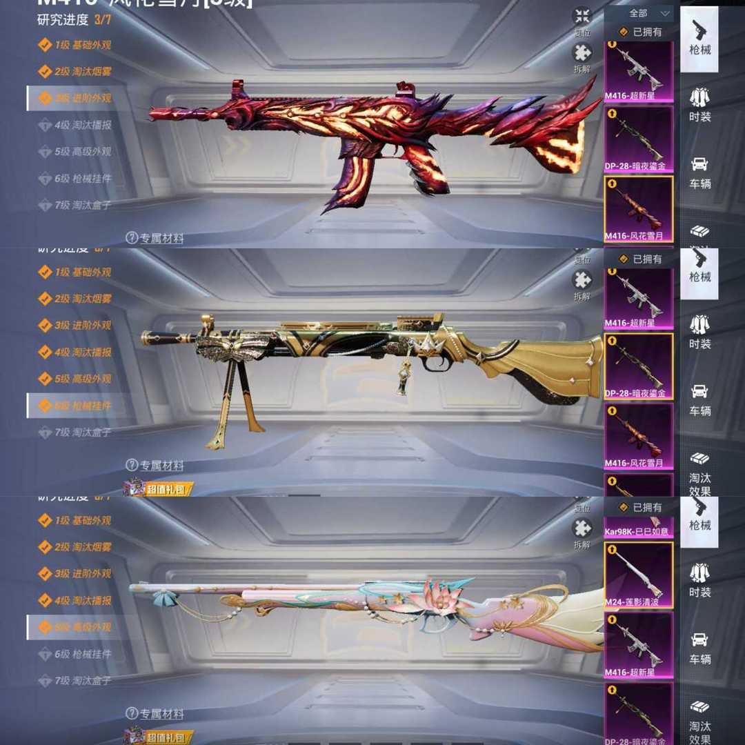 出设备撵看图1✨满巧克力AK✨6级超新星M416✨金鞋✨都市✨奇异✨哥特✨雪山✨蓝螳螂✨小丑鱼