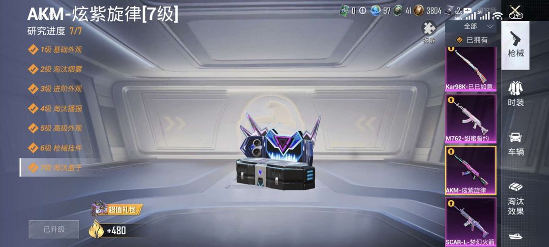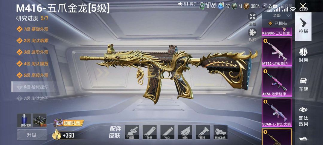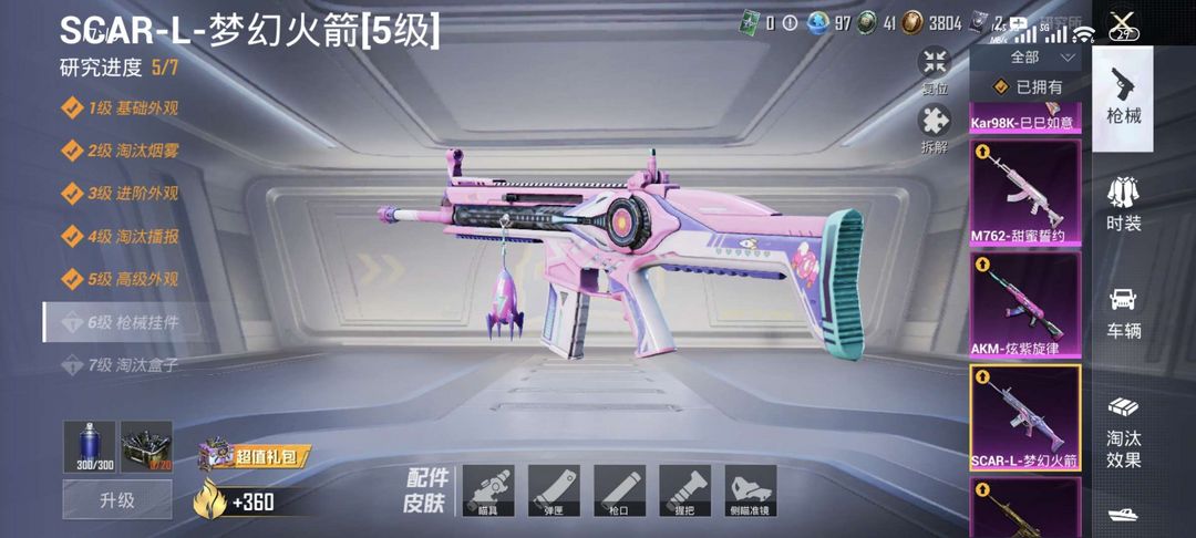 三粉装/4特效枪/2辆载具/1架僚机/5爪金龙,炫紫旋律,甜蜜誓约,梦幻火箭