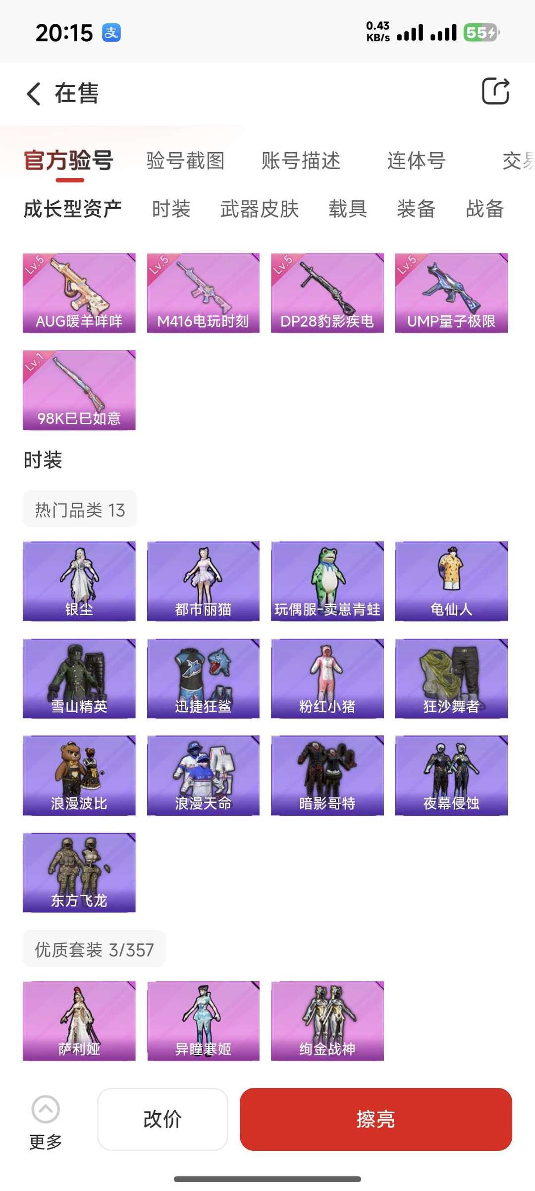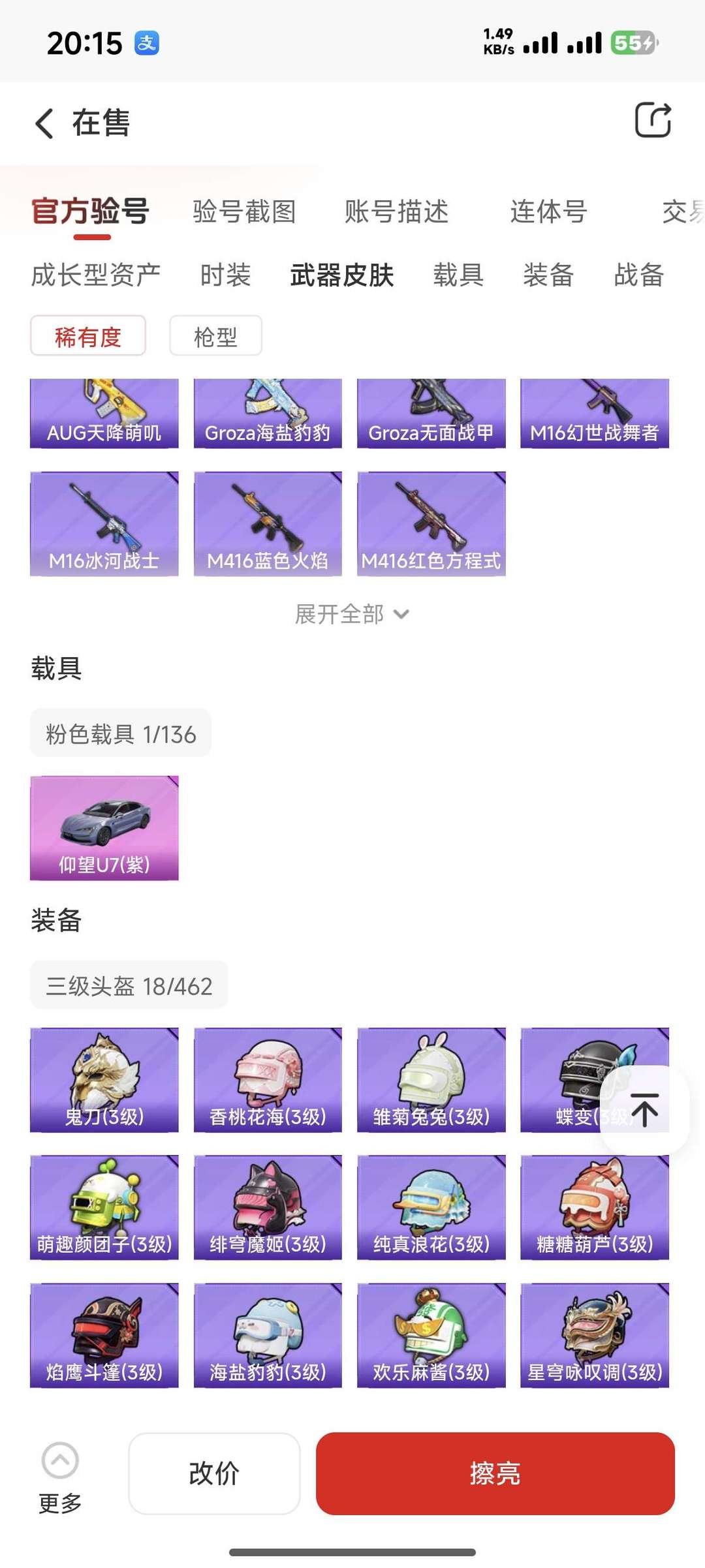 装备描述:仰望U7 5个粉枪 3粉装 深海小丑鱼等服饰 多租多送 双字ID单字军团