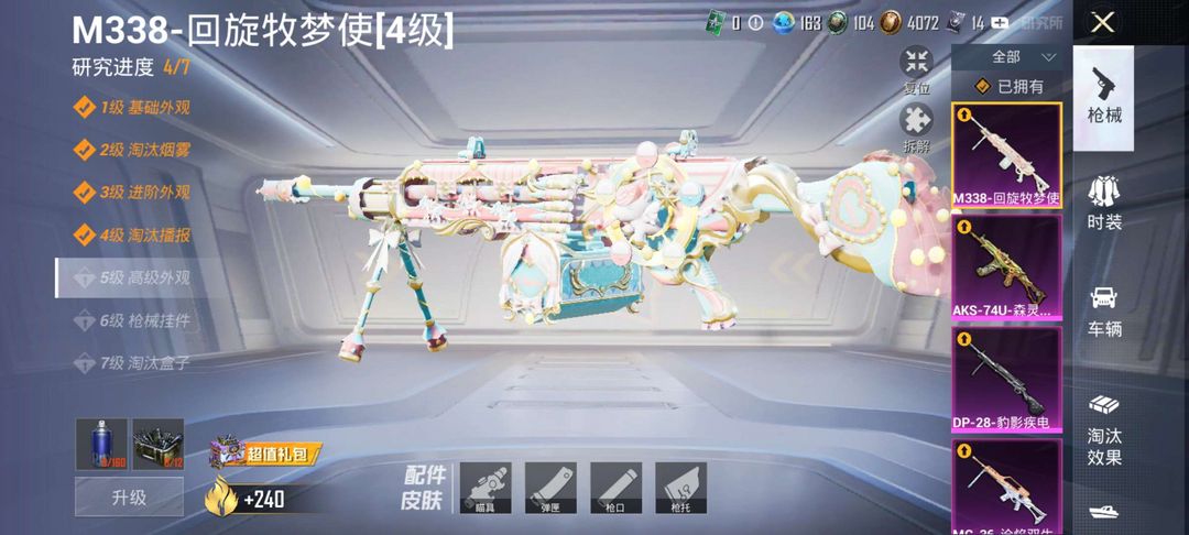 7粉装,10特效枪Aug星梦奇缘,m416风花雪月,心之恋语,m338最新特效枪红螳螂,都市猎人