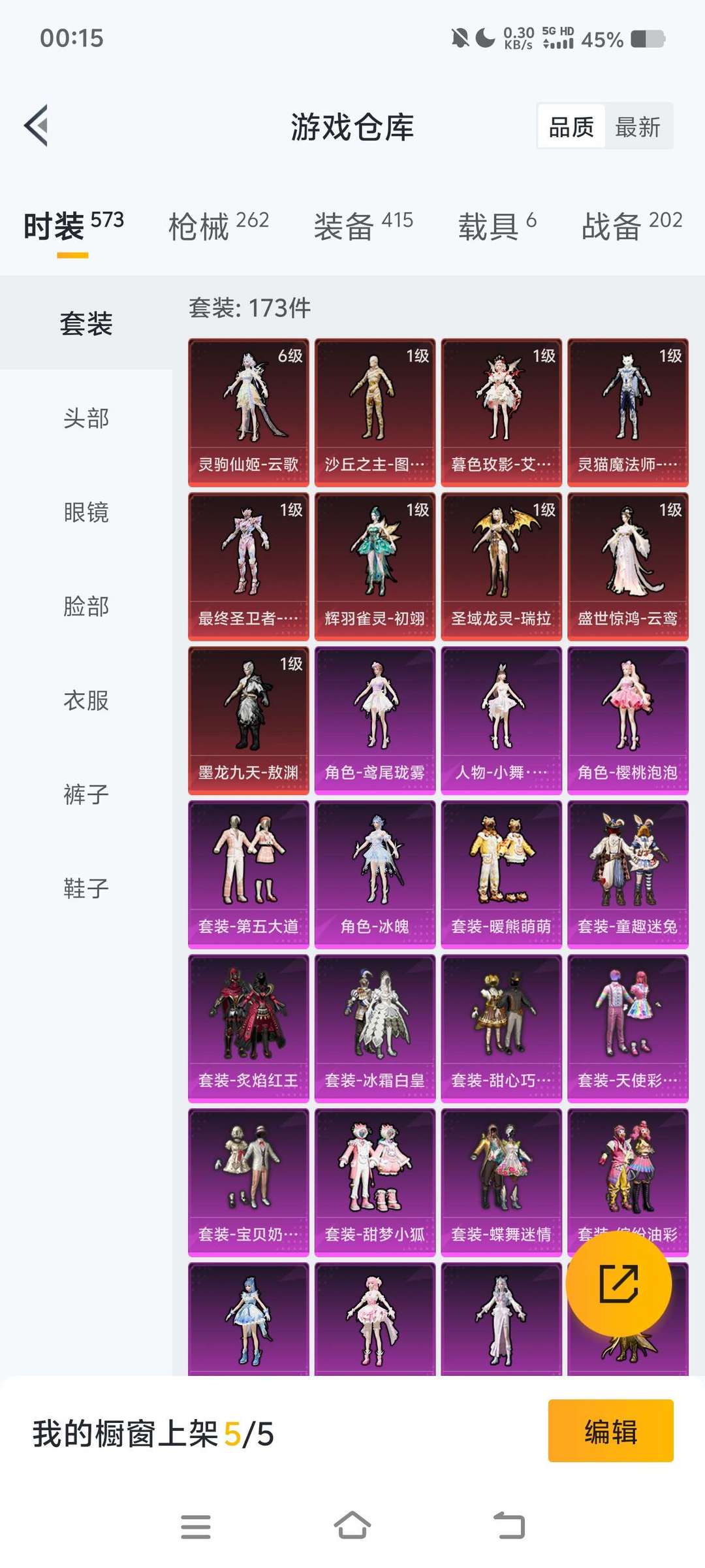 9套6级红装可拆可升,敖渊孔雀龙妈帕修斯塞维尔图卡蒙云歌艾丽娅云鸾。仓库9套红装可随意拆解升级
