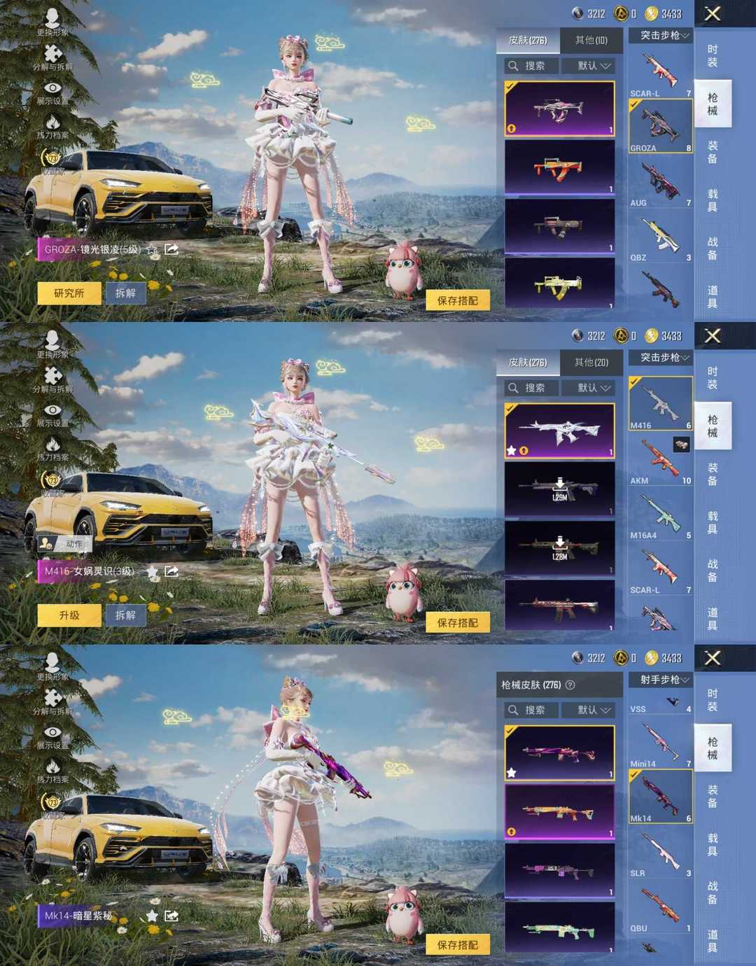 地铁满天赋8粉装11粉枪1载具AUG星之彼岸7级M416女娲灵识兰博基尼Groza镜光5级其他看图