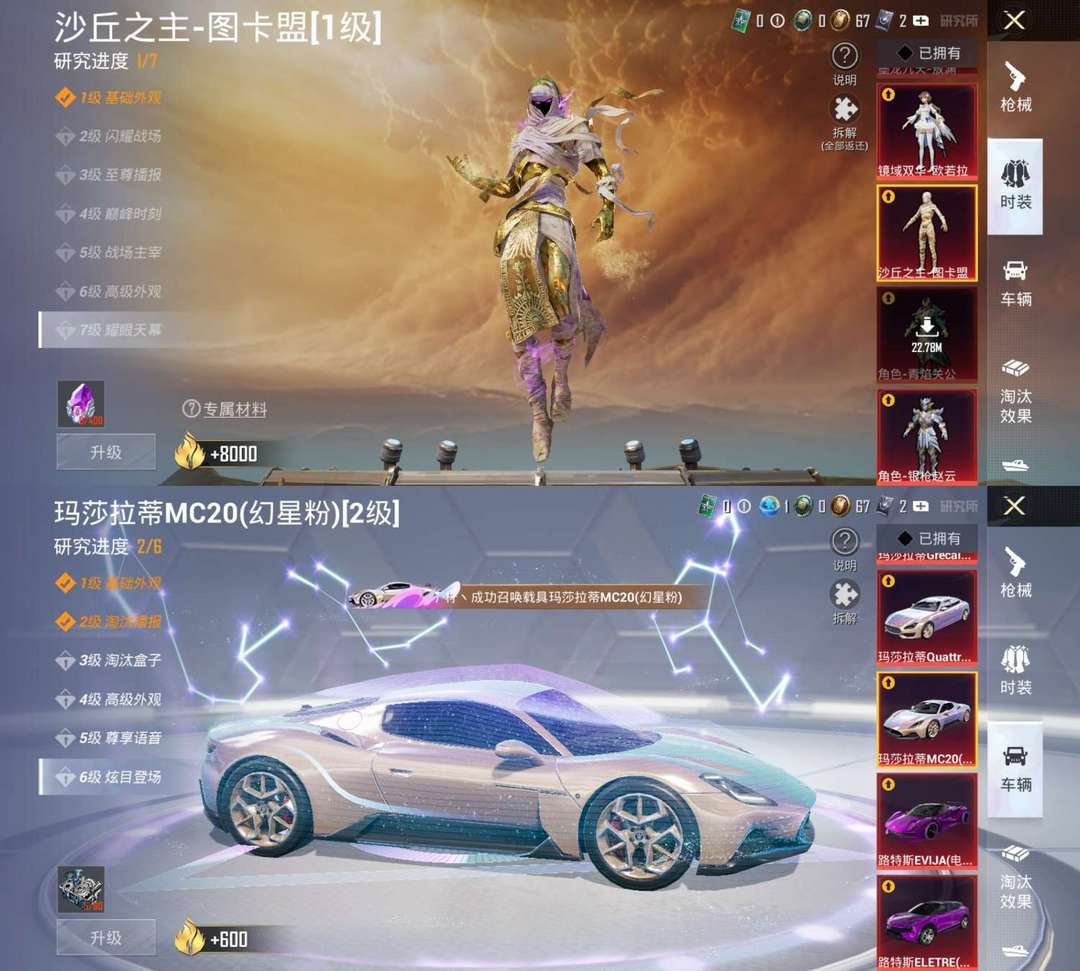 72单字ID【冫柠丶】【沙丘之主红装木乃伊】红螳螂 升级玛莎拉蒂 圣堂之誓 火箭少女 特效枪