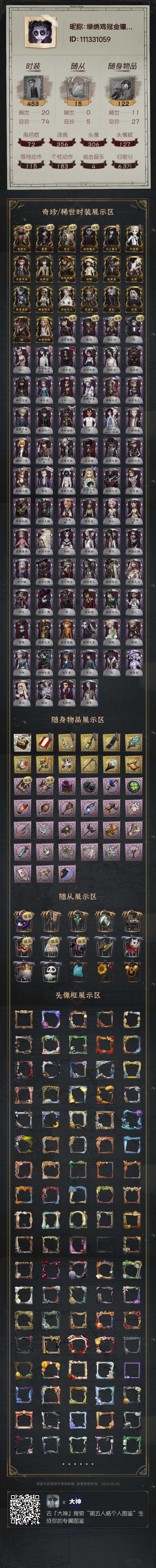 装备描述:断断续续半退游玩家,主要玩监管者,版本不适应出租账号换取收益,该账号可以PC端