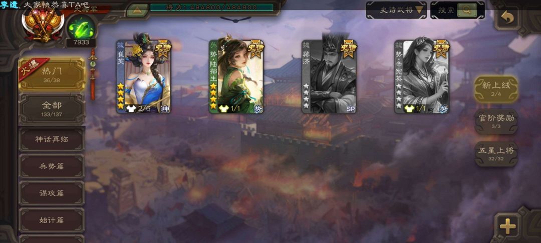 有卡万卡,V32大元帅同款VIP排面拉满48.5w将力史诗武将星级全满,最新崔芙及曹髦双形态回廊已有