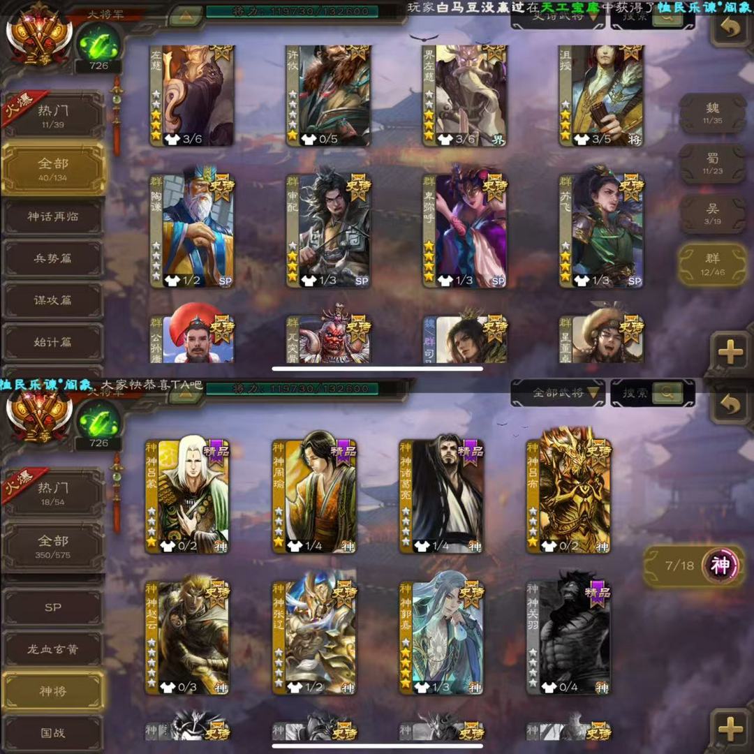 有卡40史诗大将军◆动态神郭嘉新司马昭界左慈许攸◆神赵云神张辽关索