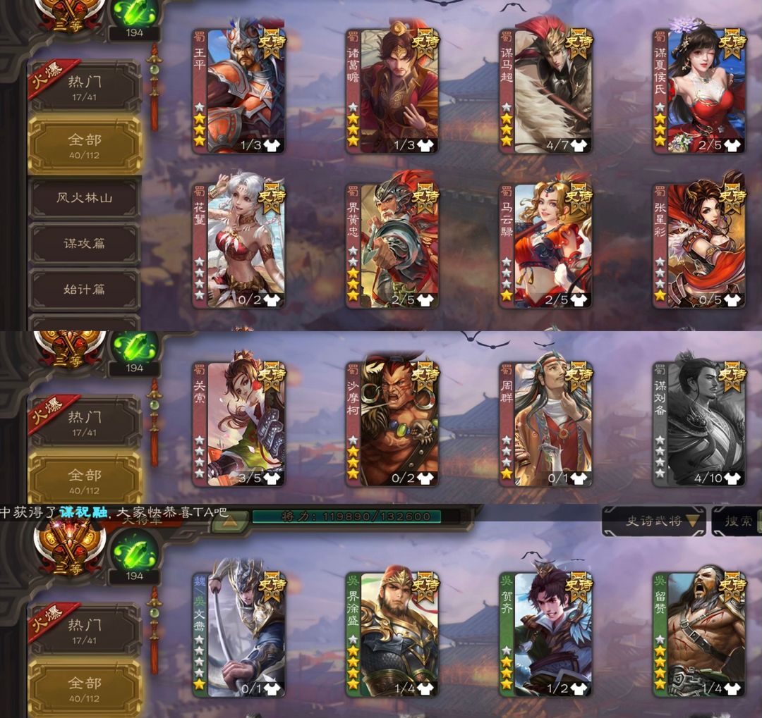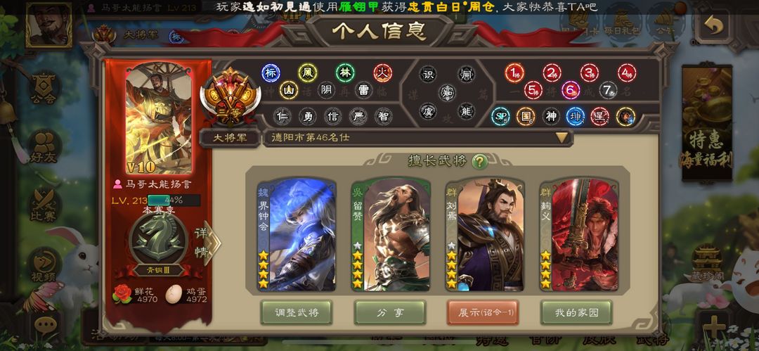 装备描述:官服个性大将军 动态刘焉 潜蛟窥天回廊界钟会 回廊白马 文鸯 神孙策 动态界左慈 裴秀 南华老仙 动态留赞 界徐盛大宝 戏志才 动态神赵云 神吕布 王允等40史诗热门大将军