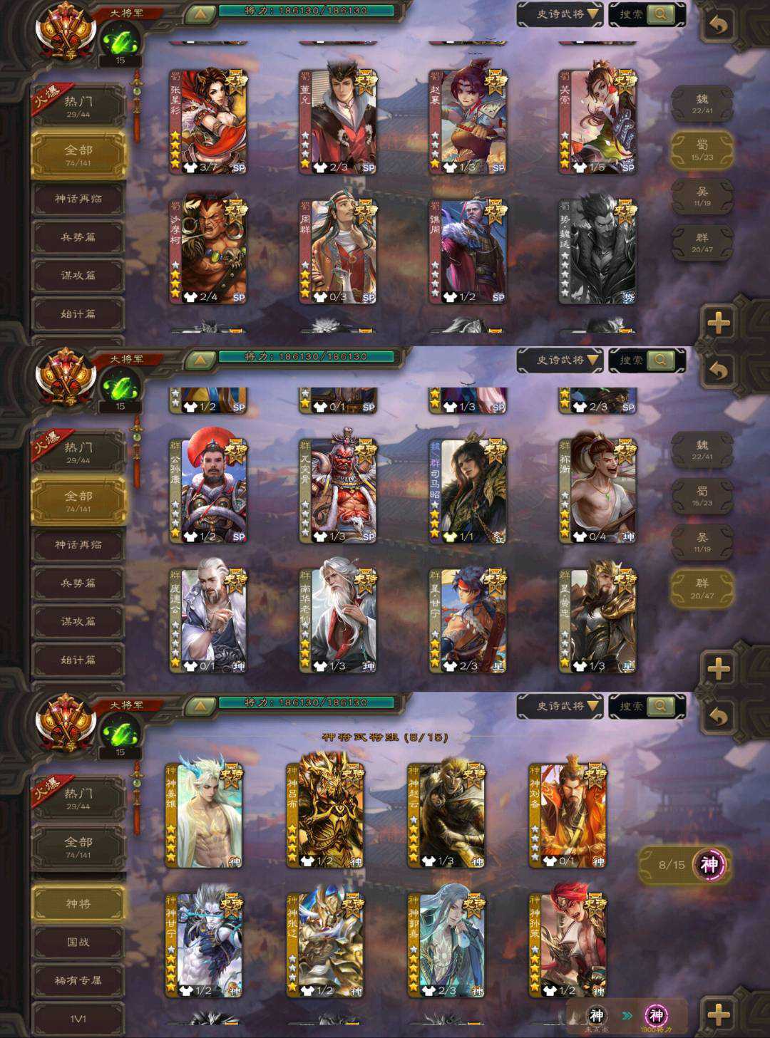 装备描述:一等大将军最新权一神姜维/三形态崔芙/动态文鸯/动态神郭嘉/动态神甘宁/奇门动态孙寒华/动态神孙策/谋刘备/动态势辛宪英/动态司马昭/祢衡/马钧等74史诗,动态优秀