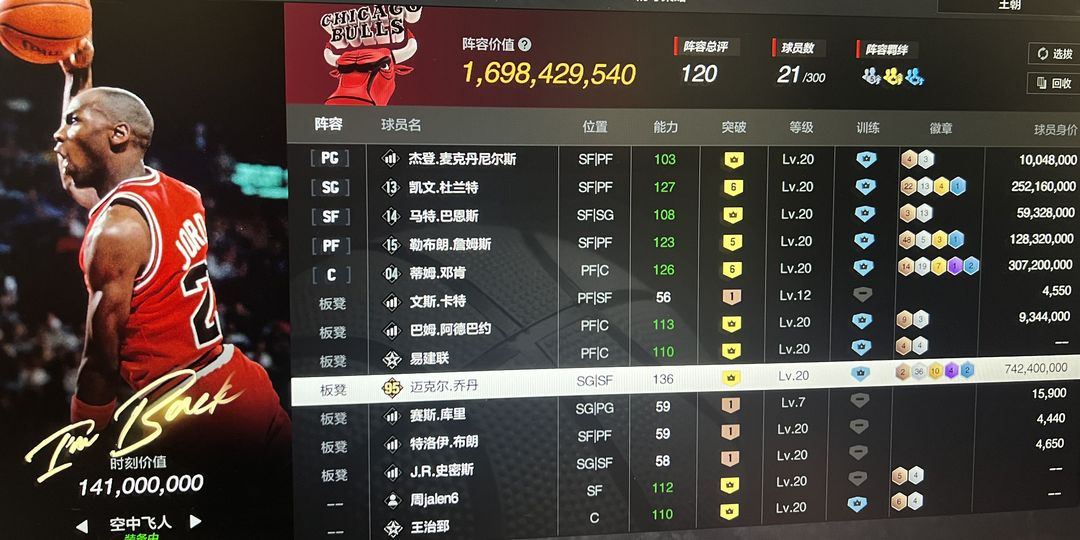 16亿阵容满突大时刻天神95乔丹,6突新邓肯,5突骑士詹姆斯,6突雷霆杜,满突杰登