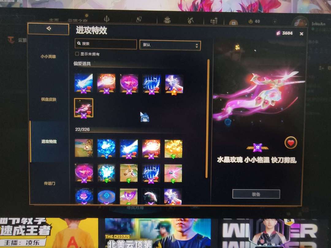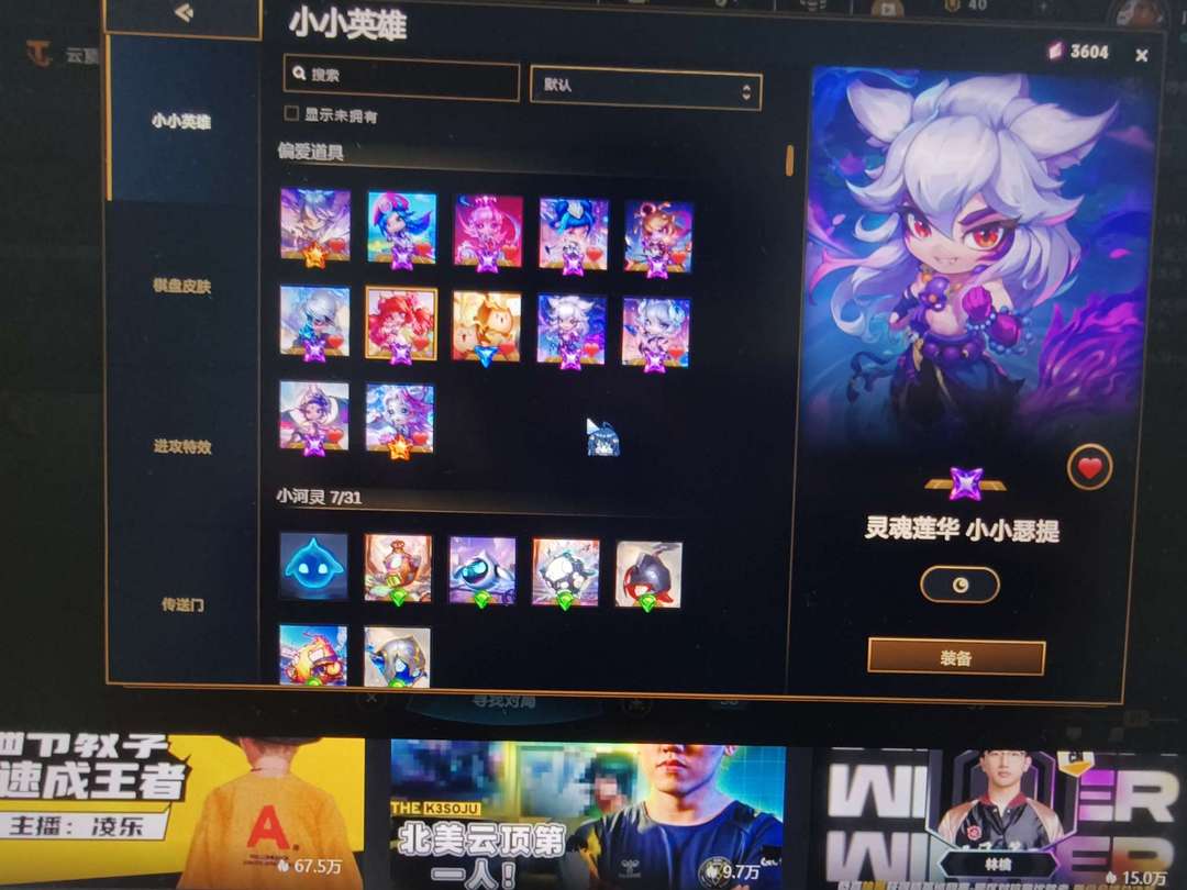 装备描述:云顶艾欧尼亚大师段位,至臻阿狸至臻EZ三件套,水晶格温三件套,水天棋盘,另有八个神话小小英雄