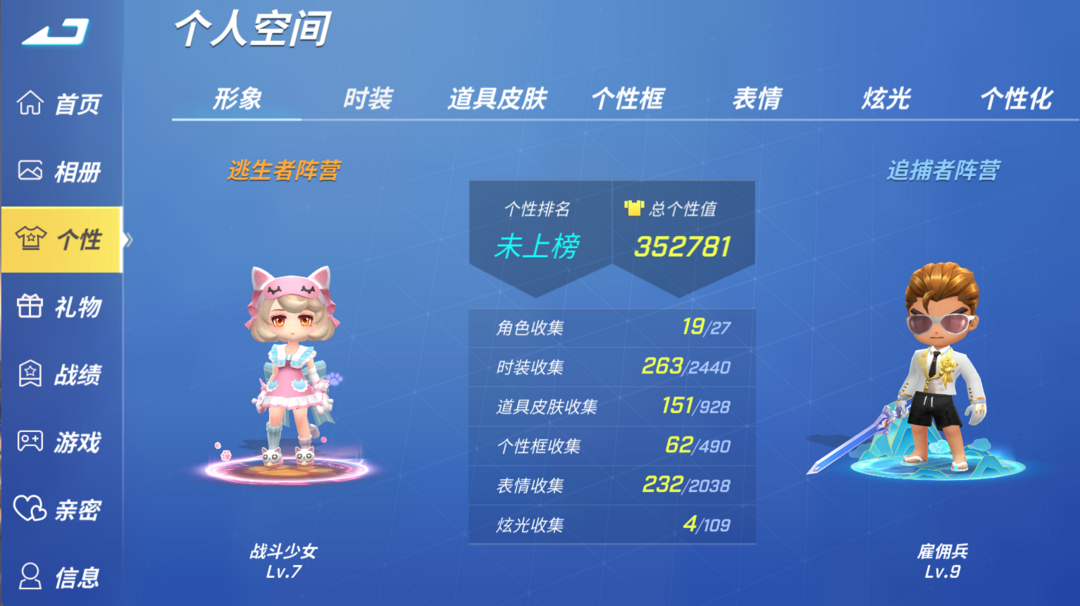 小顶级账号来来来角色19时装263道具皮肤151炫光4